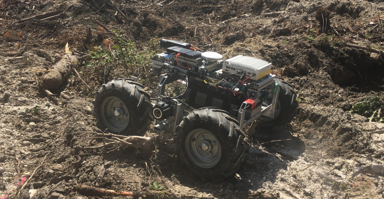 This Spearhead project is studying the underlying differences to standard robotics where methods are available for simple environments (roads, warehouses, factories etc.). Sensing technologies and new algorithms, e.g. learning capabilities, are required to operate robots outdoors in very challenging, highly unstructured environments (e.g. see next image). The project will also provide unique prototypal hard- and software to display the project outputs, integrated into one unit for a practical exemplar.